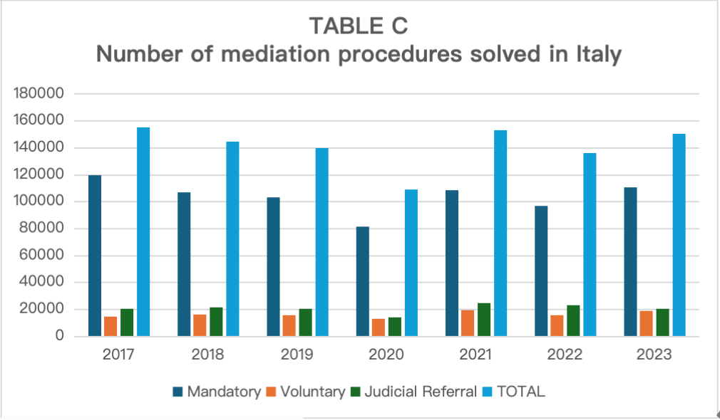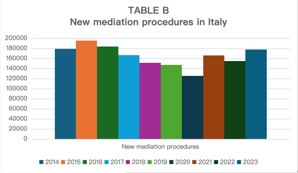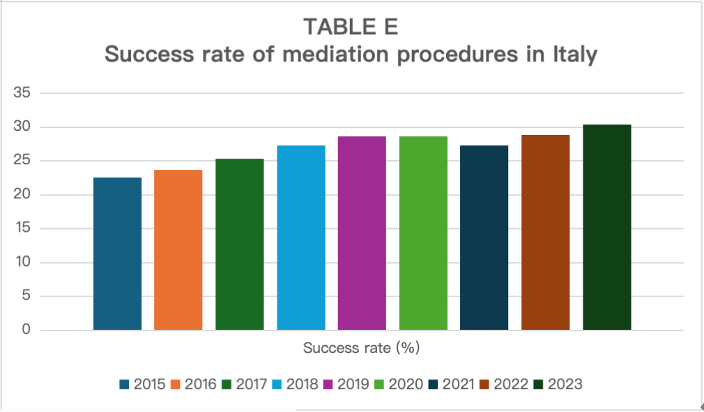 The success rate of mediation procedures in Italy has been on slow but almost constant increase since 2015 (see Table E below).