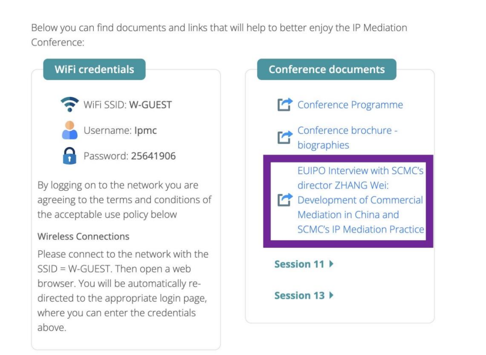 During the conference, Zhang Wei, Director of SCMC, received an exclusive interview from the organizing committee. As the only representative from the commercial mediation organizations interviewed, Director Zhang elaborated on the development of commercial mediation in China and SCMC’s IP mediation practice. She had introduced the development prospects of SCMC and its innovations and explorations in the field of commercial mediation, and that SCMC will fully leverage the role of the Sino-European International Commercial Intellectual Property Joint Mediation Mechanism created with the Boards of Appeal of EUIPO, and deepen the exchanges and cooperation in the field of Sino-European intellectual property dispute resolution, relying on the advantages of the Intellectual Property Rights Overseas Service Office.