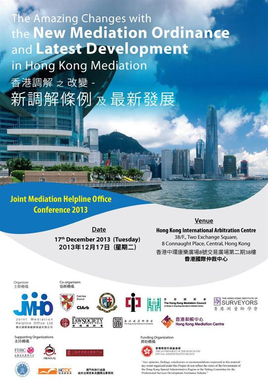 2013年12月17日,由香港特别行政区政府支持,香港国际仲裁中心、香港调解会、香港和解中心等十几家调解机构联合举办的“香港调解之改变——新调解条例及最新发展”研讨会在香港国际仲裁中心举行,上海经贸商事调解中心作为支持机构,主任张巍作为特邀嘉宾也应邀出席。此次研讨会开幕式由香港律政司司长袁国强致辞。包括香港首席区域法院法官潘兆童在内,香港法律界、商事调解领域内等资深人士都受邀参会。此次研讨会围绕香港《调解条例》的内容、香港调解的实施、转变与发展的主题展开演讲与探讨,张巍主任与香港各界就主题以及沪港两地调解事业今后的发展分别进行了深刻的交流。