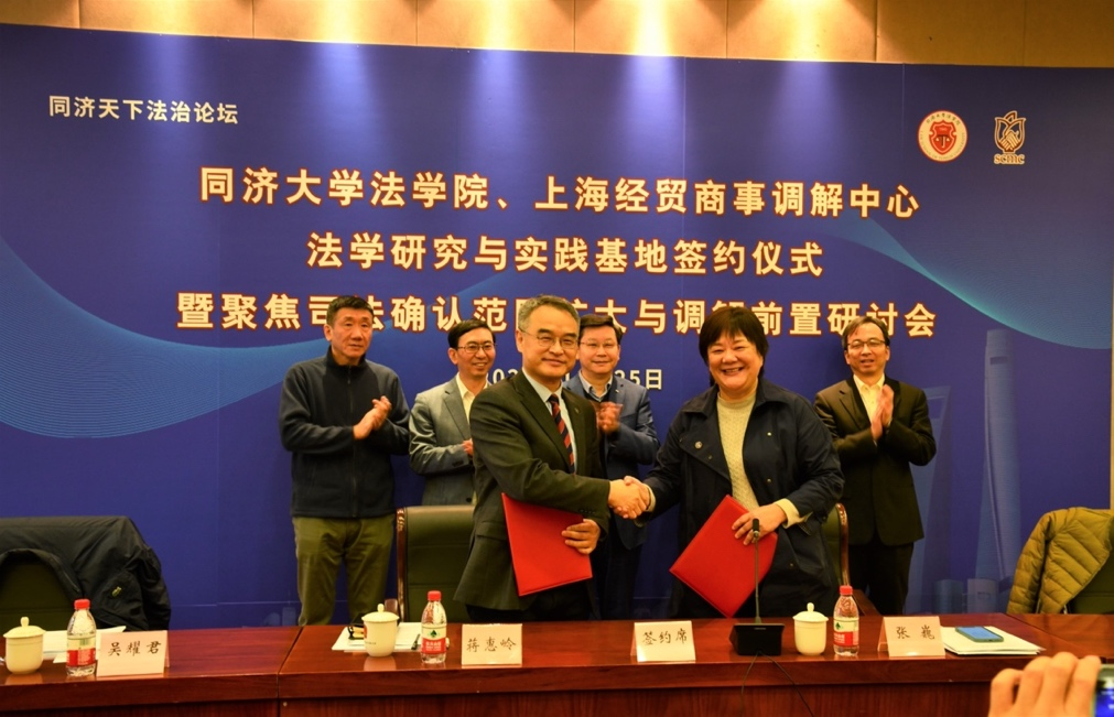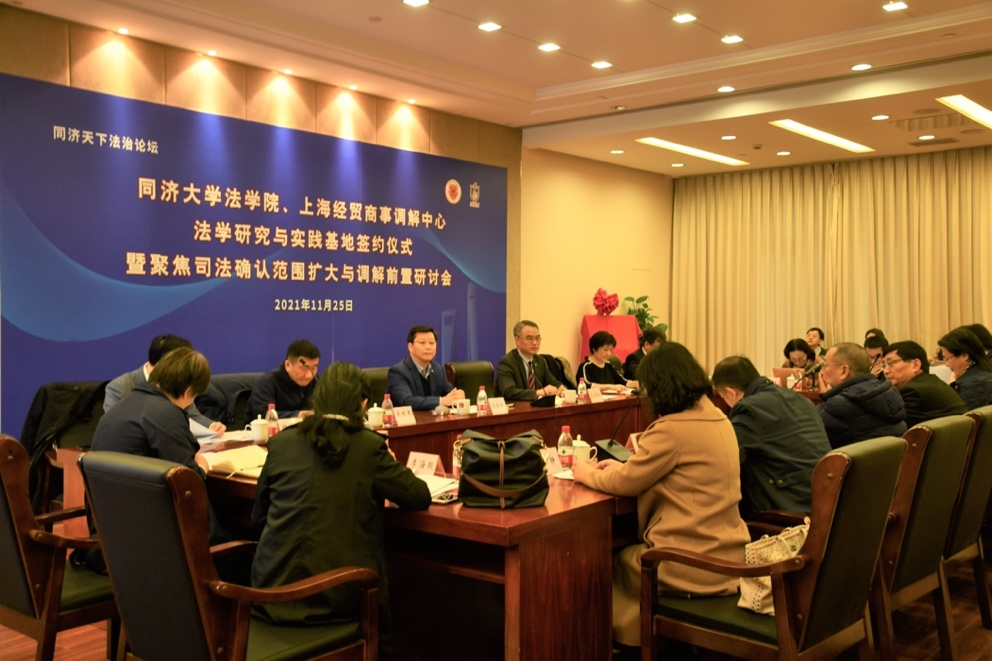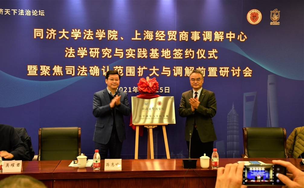 同济大学法学院、经贸商事调解中心设立法学研究与实践基地并举办司法确认与调解前置研讨会