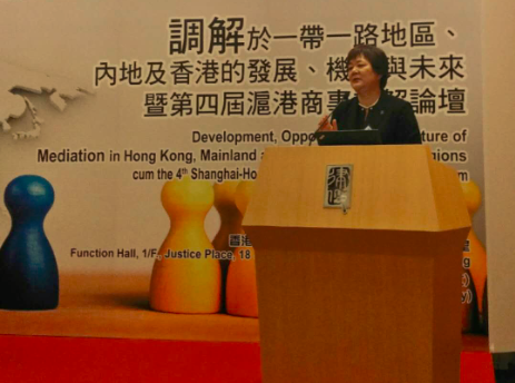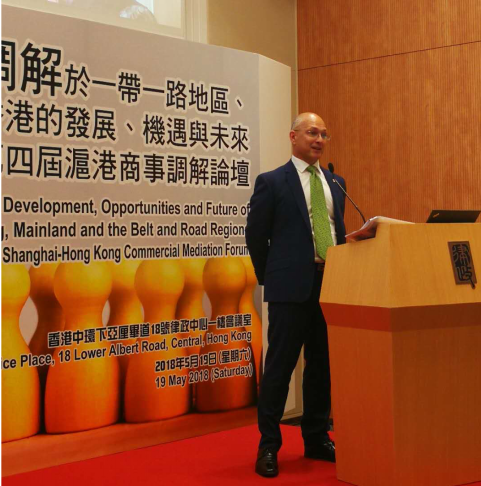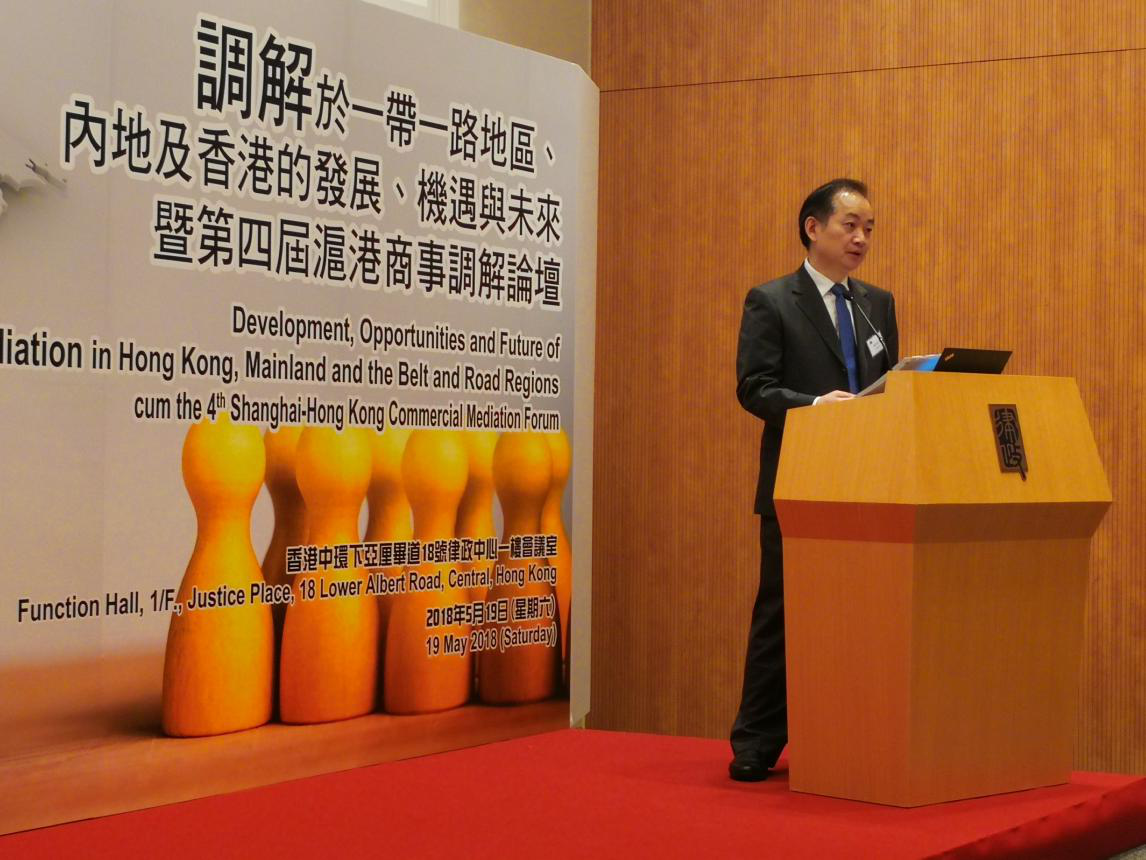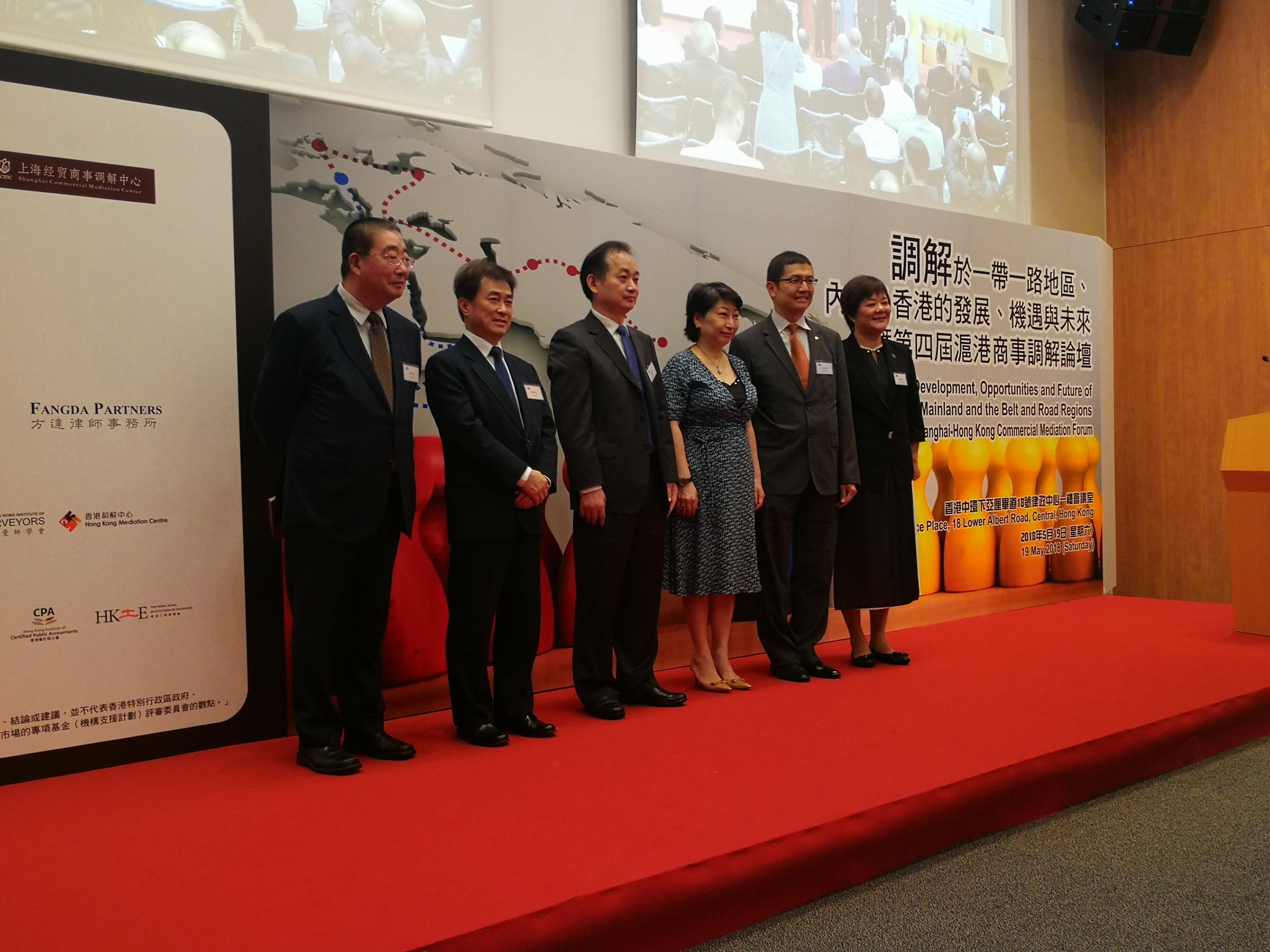 5月19日,由上海经贸商事调解中心、香港联合调解专线办事处、香港调解会共同主办、香港特区政府律政司协办的第四届沪港商事调解论坛在香港律政中心礼堂成功举行,论坛还得到了最高人民法院、上海市一中院、上海市司法局、上海市商务委、上海市港澳办、上海市律协等的大力支持。本次论坛主题为“调解于一带一路地区、内地及香港的发展、机遇与未来”。