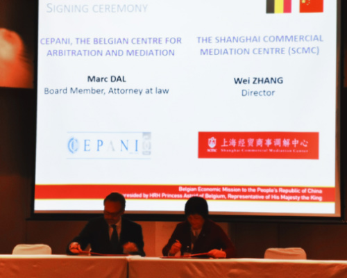 2019年11月20日,在比利时国王代表阿斯特里德公主的见证下,上海经贸商事调解中心(以下简称“调解中心”)主任张巍和比利时仲裁与调解中心董事会成员Marc Dal共同签署了加强商事调解等替代性争议解决服务的合作协议,这是比利时经贸代表团访华的一项重要内容。此次比利时经贸代表团在上海共与国内31家机构签署了合作协议,范围涵盖了经贸、航运、能源、基建、医药、高校、法律等重要领域,调解中心是本次签约唯一的法律服务机构。