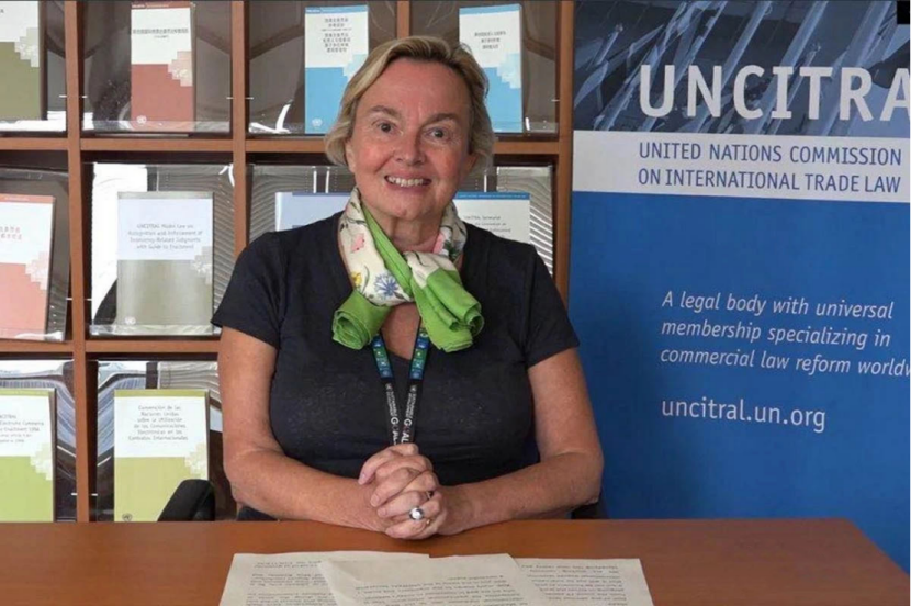 安娜·茹班·布雷女士(Anna Joubin-Bret)是贸易法委员会秘书长和联合国法律事务厅国际贸易法司司长,该厅是贸法会的实务秘书处。自1966年联合国大会成立以来,她是委员会的第九任秘书长,对《新加坡调解公约》的拟定与签署发挥了重要推动作用。