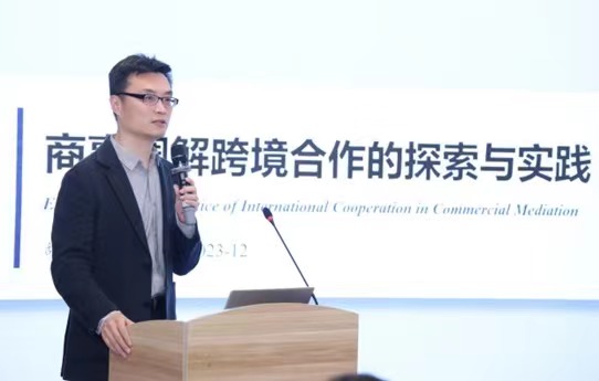 上海市方达律师事务所高级合伙人、调解中心知识产权专业委员会副主任胡震远就“商事调解跨境合作的探索与实践”展开分享。他从“和为贵”的中国商事调解文化传统谈起,指出“东方经验”的当代价值需要与国际对接,以应对市场经济发展中的复杂解纷需求。他特别提及,调解中心对标国际,已与全球20多个城市和地区的ADR机构建立了广泛的合作关系,还创设了中欧、中美国际联合调解机制,拓展了国际合作内涵,起到了典范作用。