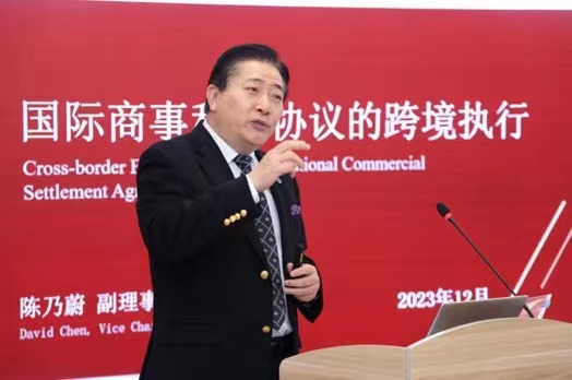 调解中心副理事长陈乃蔚围绕“国际商事和解协议的跨境执行”主题,深入浅出地解读了商事调解及《新加坡调解公约》,特别介绍了调解中心为提高国际商事和解协议公信力所作的举措。他表示,调解中心作为中国颇具影响力的专业性、国际化商事调解机构,将持续强化机构规范化建设、提升专业水准、深化国际合作与交流,以便为更多商事主体提供国际一流的专业调解服务。