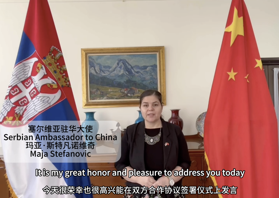 塞尔维亚共和国驻华大使玛娅·斯特凡诺维奇女士发来视频祝贺。