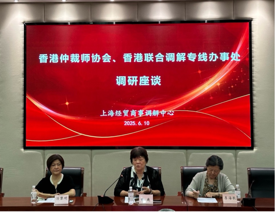 6月10日上午,香港仲裁师协会会长王则左大律师、香港联合调解专线办事处主席萧詠仪律师率香港仲裁与调解领域的资深专家,在华东政法大学涉外法治学院常务副院长、普通法学术中心秘书长冷静教授的陪同下,莅临上海经贸商事调解中心(以下简称“调解中心”)开展交流座谈。