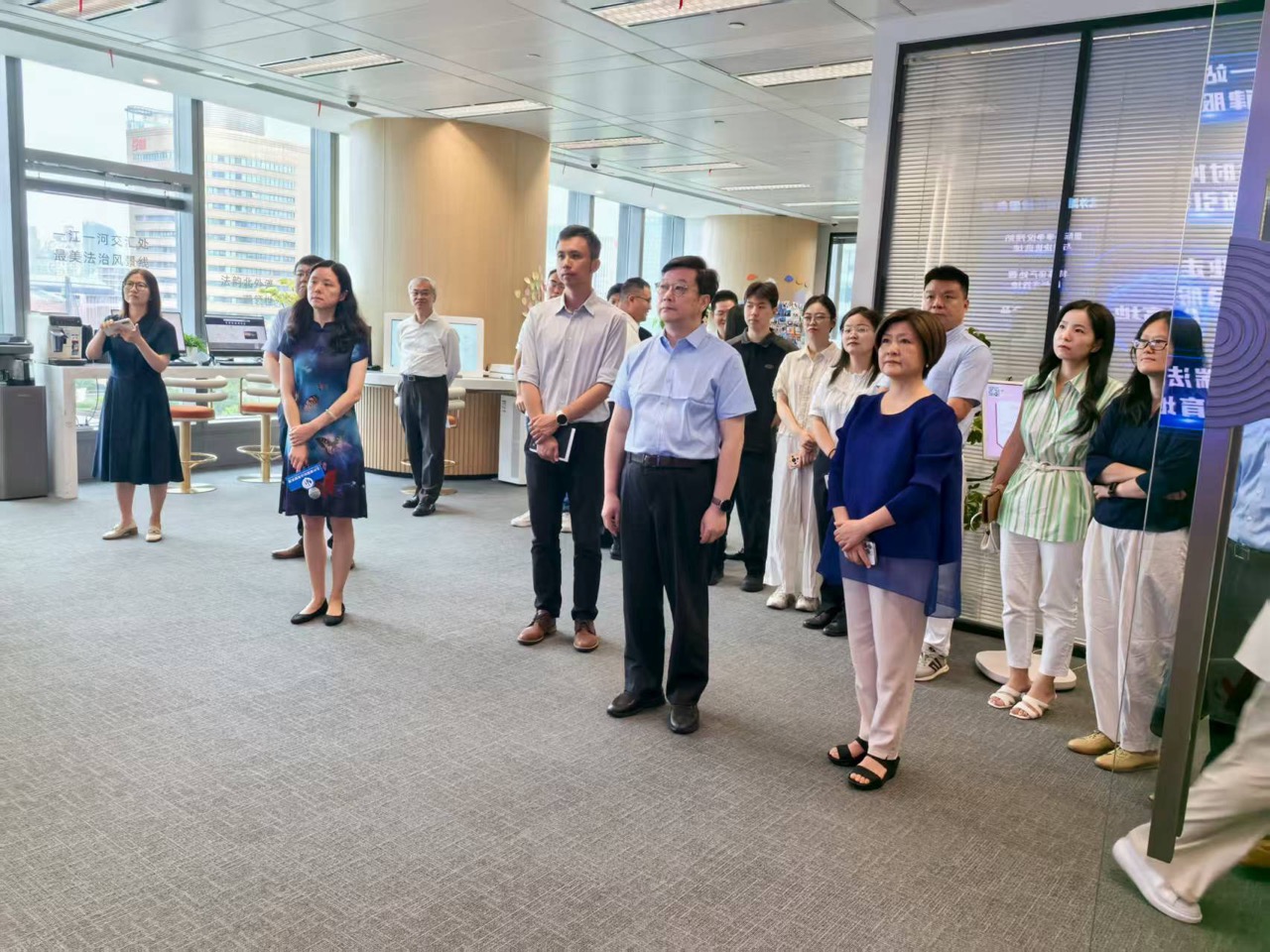 与会嘉宾实地参访北外滩国际法律服务港。虹口区司法局副局长周颖斌和北外滩负责人介绍了北外滩国际法律服务港功能布局、服务机制、国际商事纠纷路径等方面。