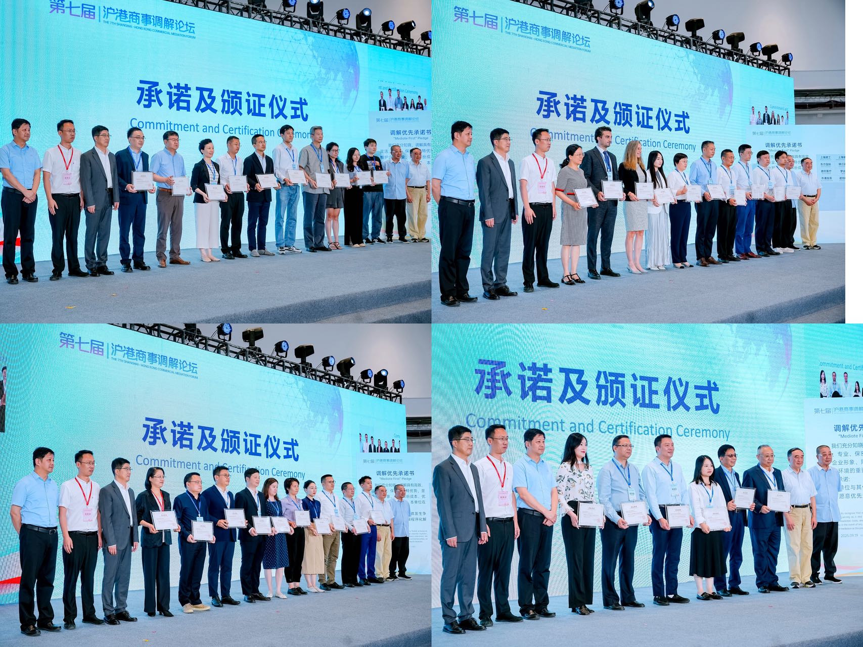 近40家企业代表参与“调解优先承诺”活动,郑重承诺优先选择调解解决纠纷,香港律政司副司长张国钧在线致辞,上海市法学会多元解纷法治研究会会长顾伟强、副会长王协、上海市国有资产监督管理委员会政策法规处处长钟可慰、上海市司法局人民参与和促进法治处处长俞静贤、上海市黄浦区司法局党委书记、局长王建忠等人为承诺单位颁发证书。