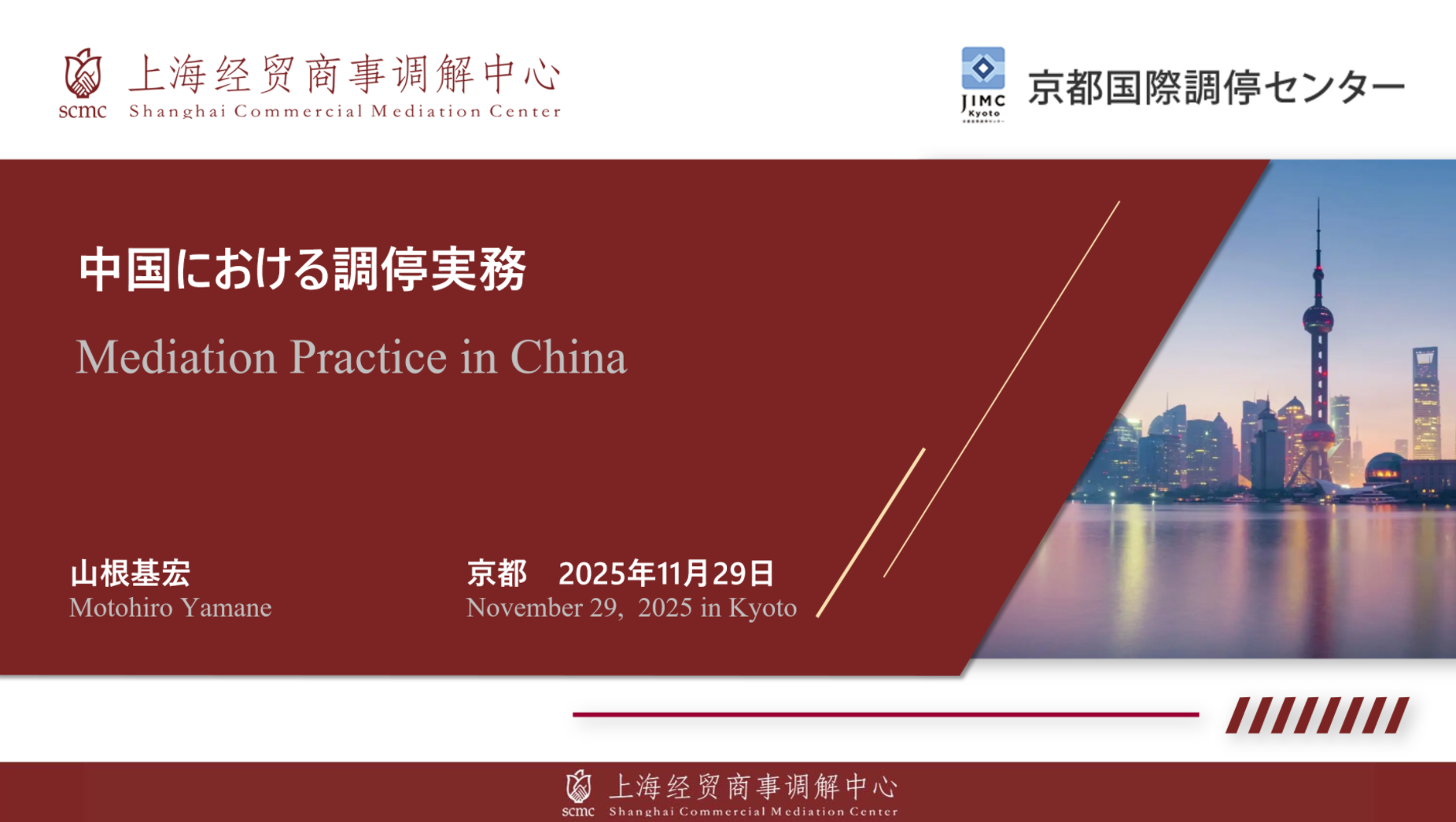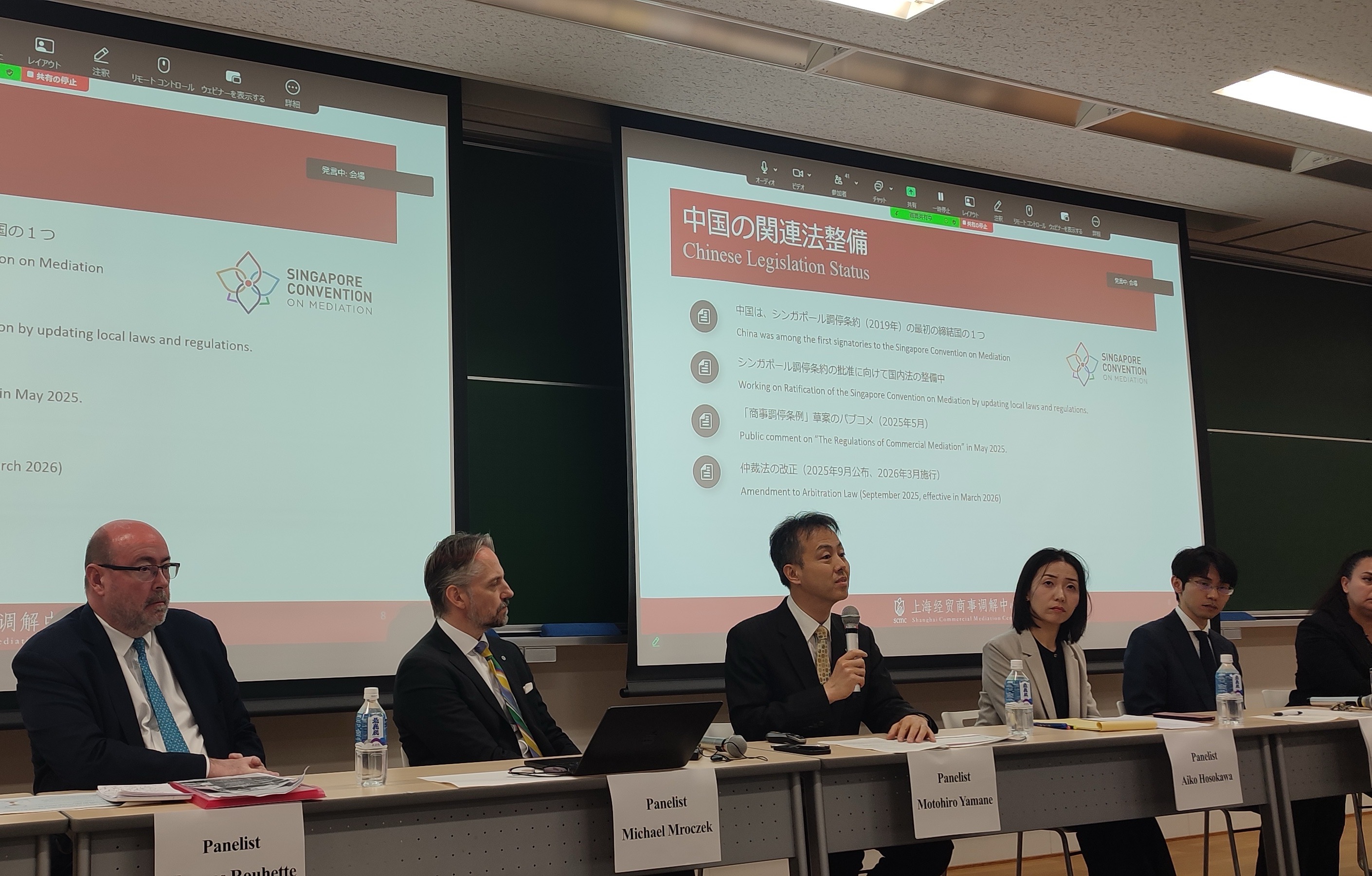 SCMC调解员山根基宏(Motohiro Yamane)先生作为SCMC调解员代表,以其近20年在华生活工作的跨文化积淀,为现场带来了兼具东方智慧与国际视野的中国实践分享,成为全场焦点。山根先生从中国商事调解的“立法完善—机制创新—国际衔接”三维度展开,系统介绍了中国从商事调解行业萌芽到专业化发展的脉络,重点解读了中国最新商事调解立法中的创新条款,以及中国推动《新加坡调解公约》批准进程的关键举措。他强调,SCMC作为中国领先的调解机构,正持续推进专业化与国际化建设,通过完善调解员培训体系、建立国际联合调解机制、推广“调解优先”企业共识等举措,助力中国商事调解走向国际舞台。